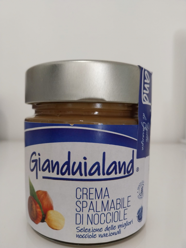 Ingredienti: nocciole tostate (origine Italia), zucchero, grasso vegetale (palma, girasole, shea in proporzione variabile), latte intero in polvere, latte scremato in polvere, emulsionante leciticina di soia, vanillina, aromi.
